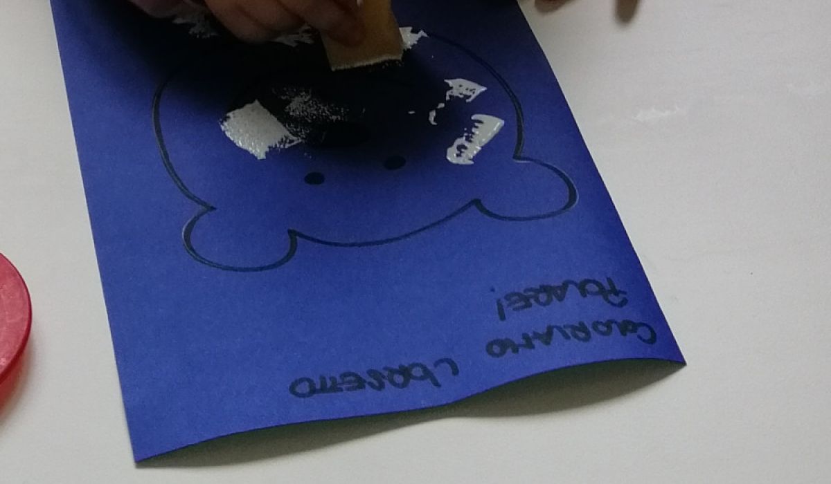 Oggi ci divertiremo a colorare un simpatico orsetto polare con una spugnetta imbevuta di tempera!!